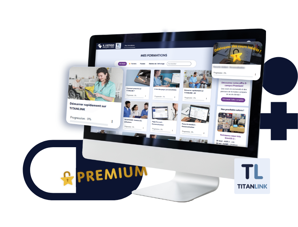 L’offre e-Campus Premium s’adresse directement aux établissements sociaux et médico-sociaux (ESMS) qui souhaitent renforcer la formation continue de leurs équipes sur nos logiciels et applications TITANLINK.